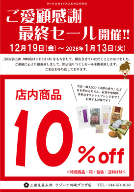 LAZONA川崎廣場Plaza 店內正在進行清倉甩賣,感謝您一直以來的惠顧
