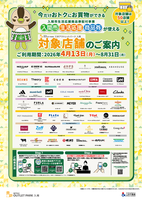 【公告】【自4月13日(星期一)起至26日】入間入間市生活支援購物券可使用的參與商店資訊。