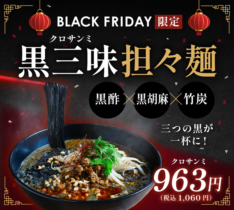 BRACK FRIDAY新メニュー\"黒三味(クロサンミ)担々麺が新登場/