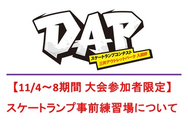 11/4(火)~8(土)期間 DAPスケートランプコンテスト 事前練習場について