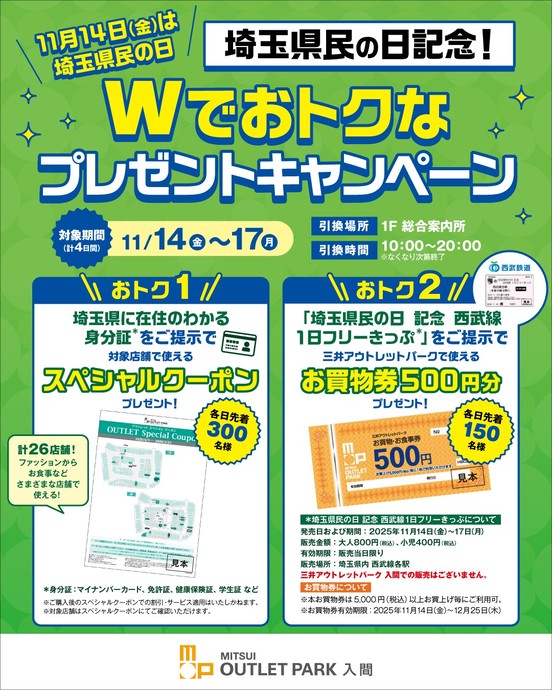 【埼玉縣民日紀唸!】 W優惠禮品活動