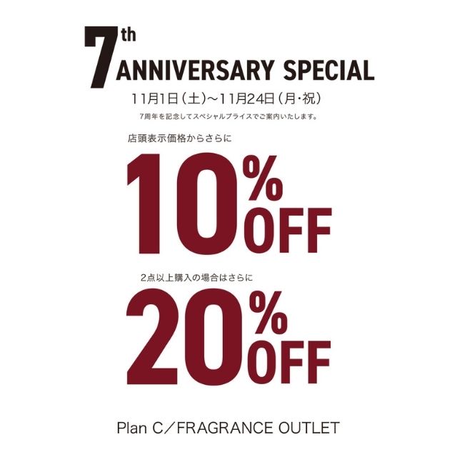 11/1 (周六) ~11/24 (周一·節慶) 7周年紀唸特別促銷