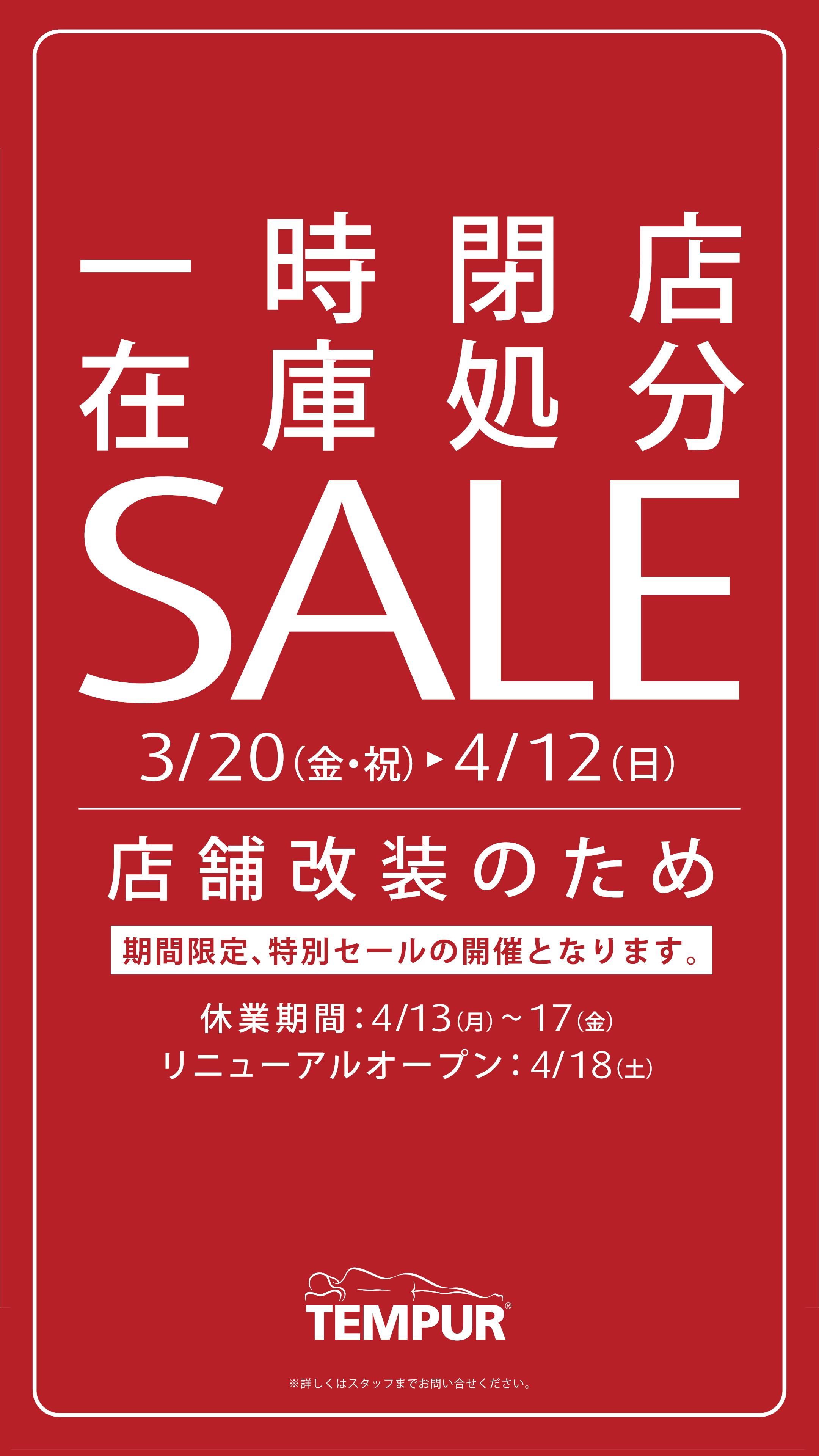 TEMPUR® 店内改装前在庫処分SALE開催中!!