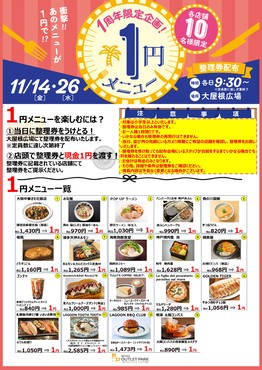 ![]()  NEW 11/14 (周五)、26 (周三) 舉行那個菜單!1日元! 美食 2025/11/14 (五) ・11/26 (三)