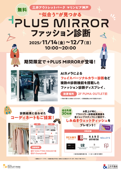 (在MITSUI OUTLET PARK瑪林匹亞神戶店,僅提供臉部個人色彩診斷服務。)
