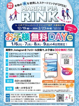 限時優惠! [2025年12月19日(週五)~ 2026年2月23日(週一,國定假日)]瑪林匹亞神戶將開設溜冰場♪