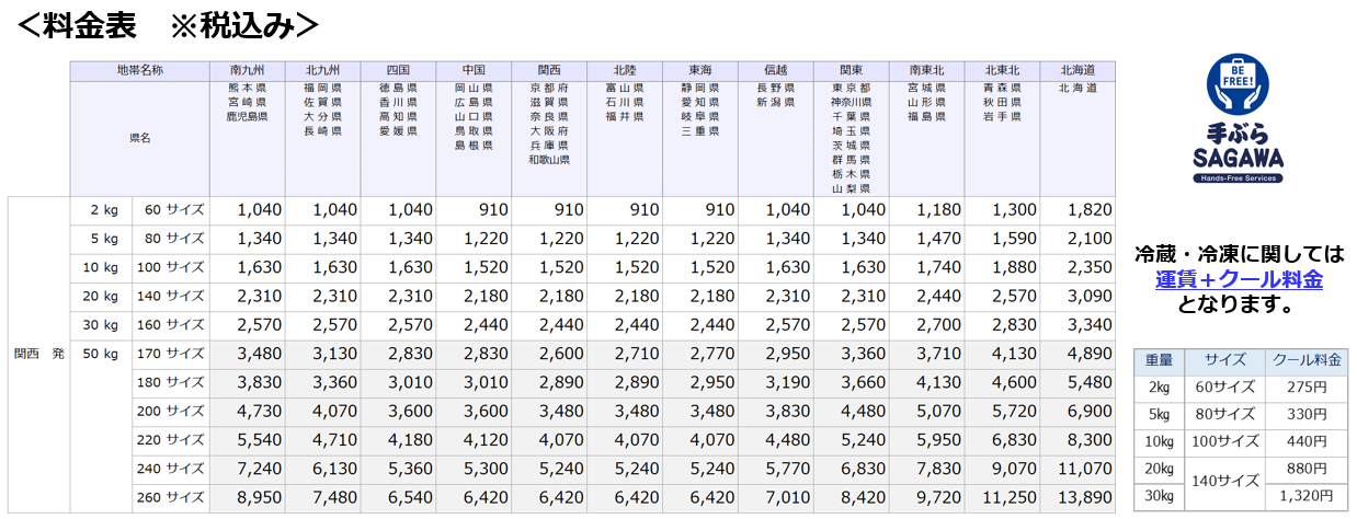 ■處理尺寸:三邊合計260cm以內,50kg以下(冷凍冷凍:三邊合計140cm以內,30kg以下)