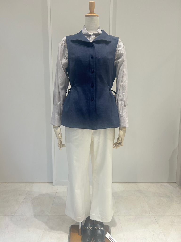 在第二張照片中,我把背心裡面的衣服換成了襯衫,褲子也換成了淺白色,這樣看起來更涼爽一些(^▽^)/
