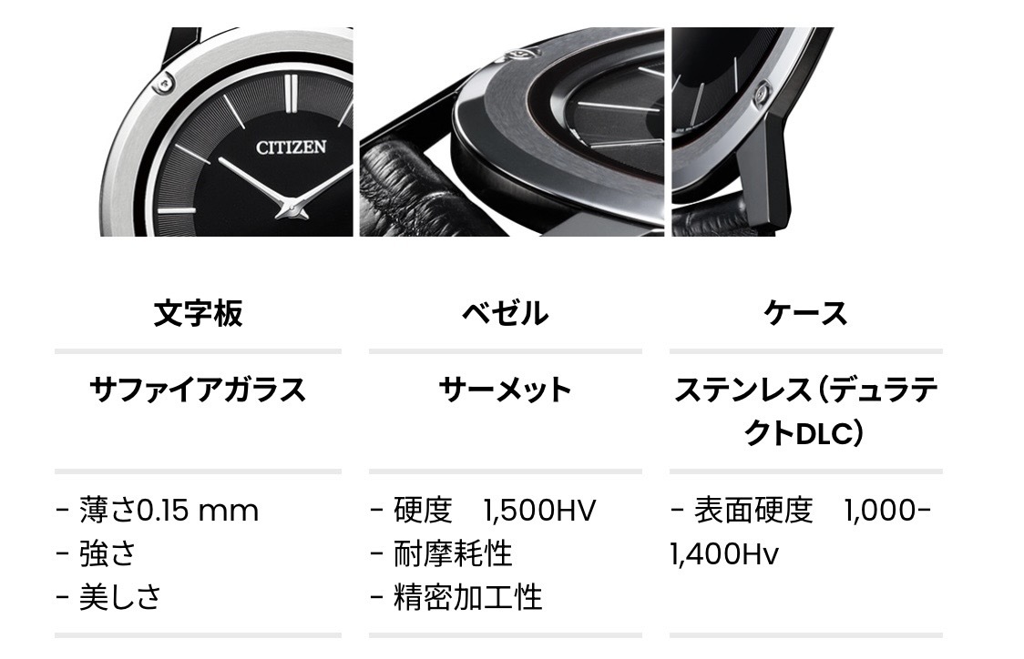 雖然使用一定厚度的藍寶石很常見,但CITIZEN憑藉其豐富的加工技術,針對使用薄藍寶石的問題,採取了一種獨特的方法,最終實現了僅 150 微米(0.15 毫米)的厚度。