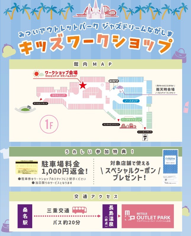 三井アウトレットパーク ジャズドリーム長島でキッズワークショップを開催いたします!