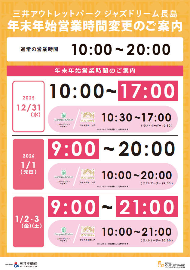 非常感謝您一直以來對MITSUI OUTLET PARK爵士之夢長島支持。