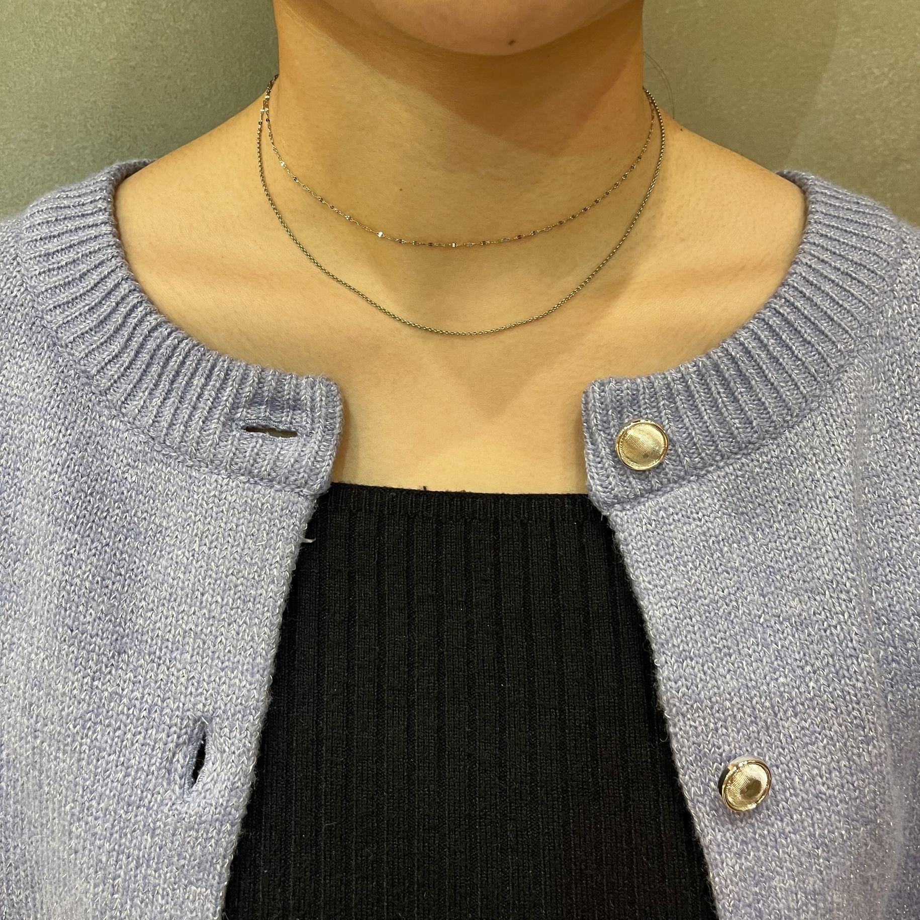 頂部最新資訊推薦單品新作介紹 新作介紹 手錶&配件北區2F Jouete 【雙向項鍊】 將長項鍊疊戴兩層是一種很漂亮的風格。它長 80 厘米,所以繞一圈時顯得休閒放鬆,繞兩圈時則顯得頸部整潔利落。 對於初次嘗試層次髮型的人來說,建議將長髮與頸鍊搭配,打造精緻優雅的造型。 銀項鍊 ¥10,780(含稅)SV 項鍊 ¥14,630(含稅) 請到Jouete門店體驗。 手錶&配件北區2F Jouete朱埃 電話番号 0594-82-5801 查看圖標說明 查看圖標說明