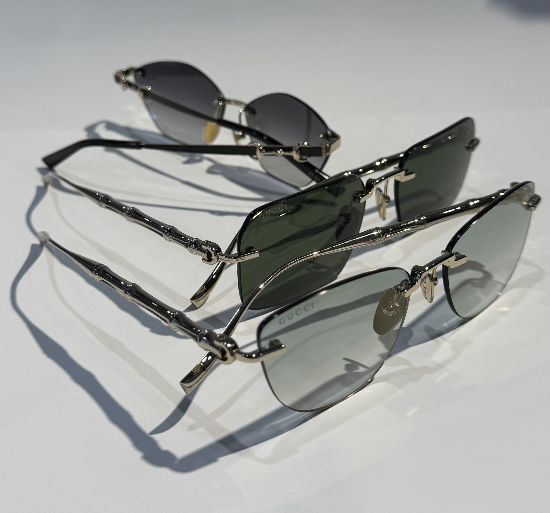 這款無框太陽眼鏡是對GUCCI標誌性設計的現代詮釋。