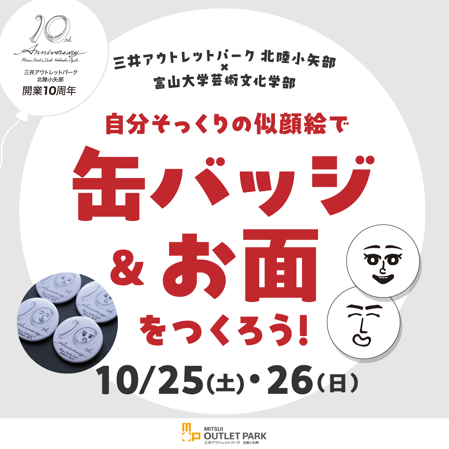 在 「MITSUI OUTLET PARK北陸小矢部× 富山大學藝術設計學院 」的 "Making Smile "攤位上,將進行原創徽章和面具製作工作商店。