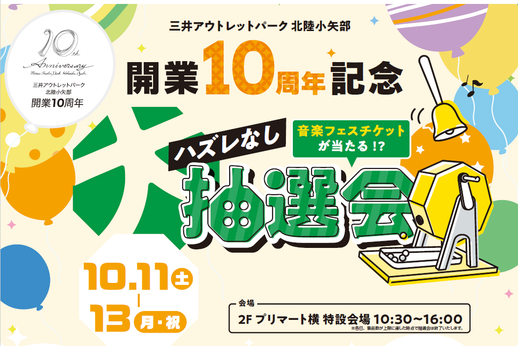MITSUI OUTLET PARK北陸小矢部今年迎來了開幕10週年!