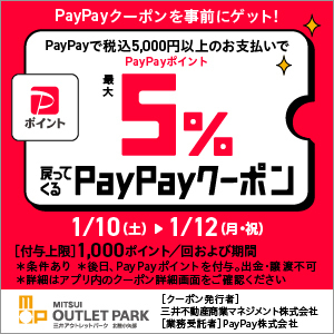 【2026/1/10 (周六) ~1/12 (周一·節慶) 】 PayPay可返還5%積分的優惠券發送!!