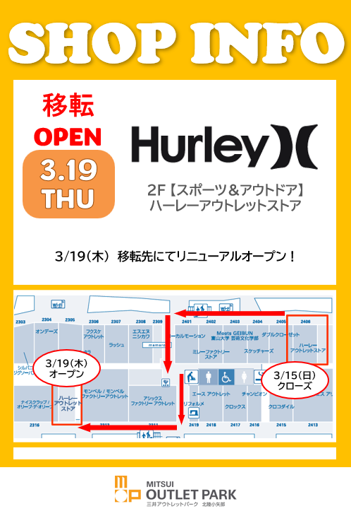 [HURLEY OUTLET STORE] 將於3月19日星期四重新開業!