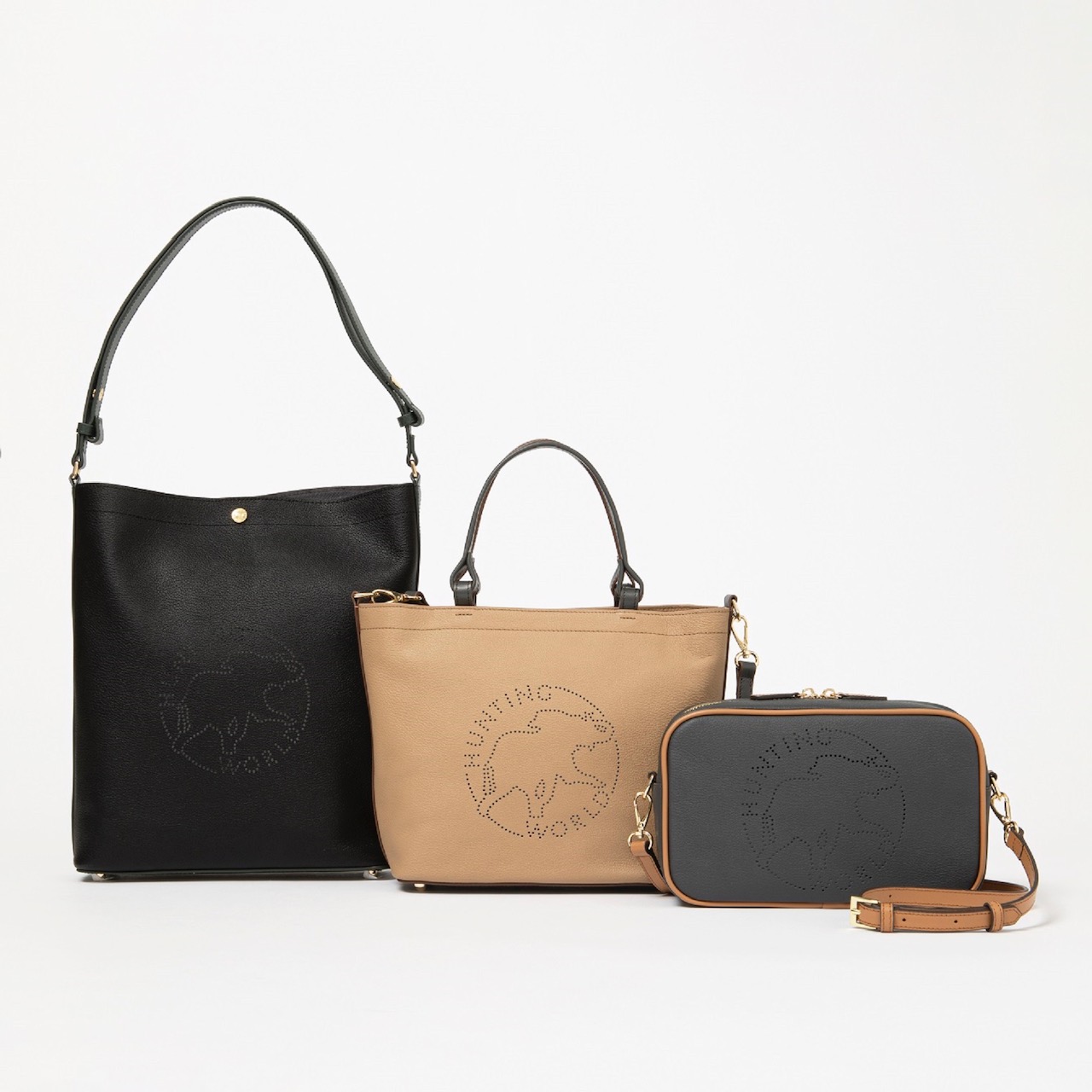 這款包款以別緻色彩的穿孔皮革和飾邊皮革打造出一個碩大的大象標誌,既獨特又經典。