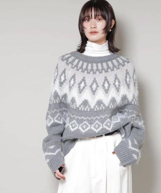 ・一款以同心圓圖案為主要特徵的毛絨混紡針織Top's