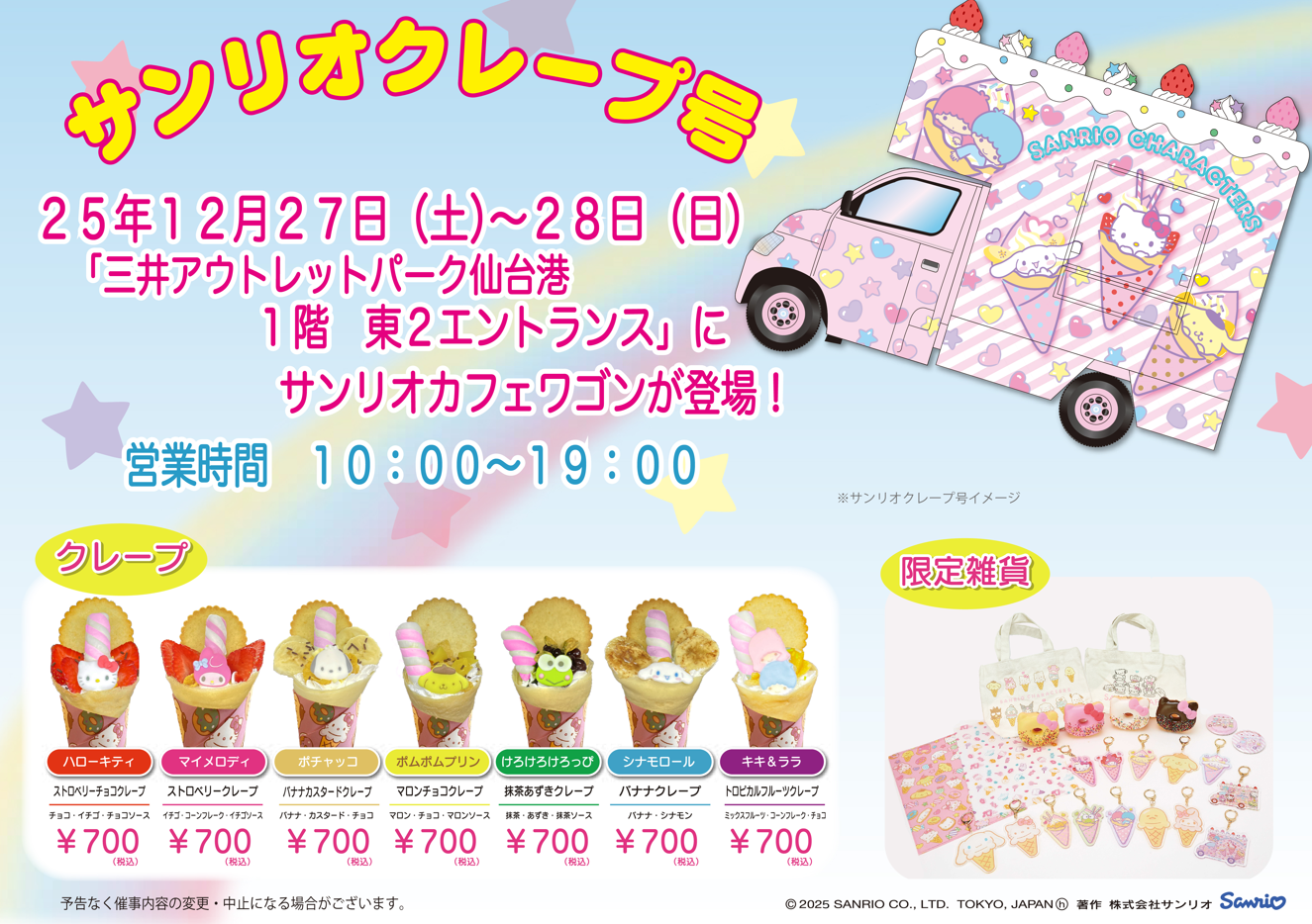 Sanrio Cafe Wagon 抵達MITSUI OUTLET PARK仙台港!