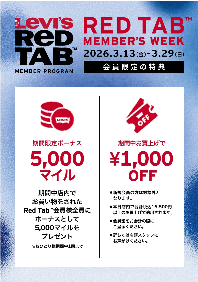 日頃のご愛顧に感謝を込めて、 **「Levi's Red Tab MEMBER’S WEEK」**を開催いたします。