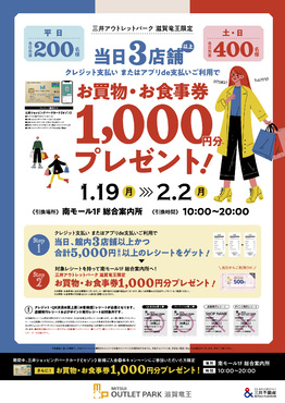 京都信用金庫應用程式「Tenohira Kyoshihin」的用戶專用!MITSUI OUTLET PARK滋賀龍王的購物活動♪