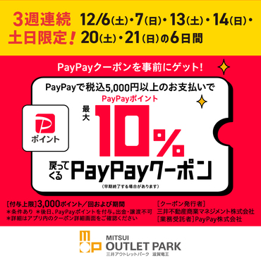 【連續3周周六周日限定!】 PayPay優惠券政策最多可返還10%的PayPay積分!