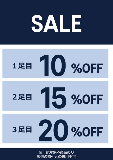 【期間限定】 1雙10% OFF,2雙15% OFF,3雙以上20% OFF!!