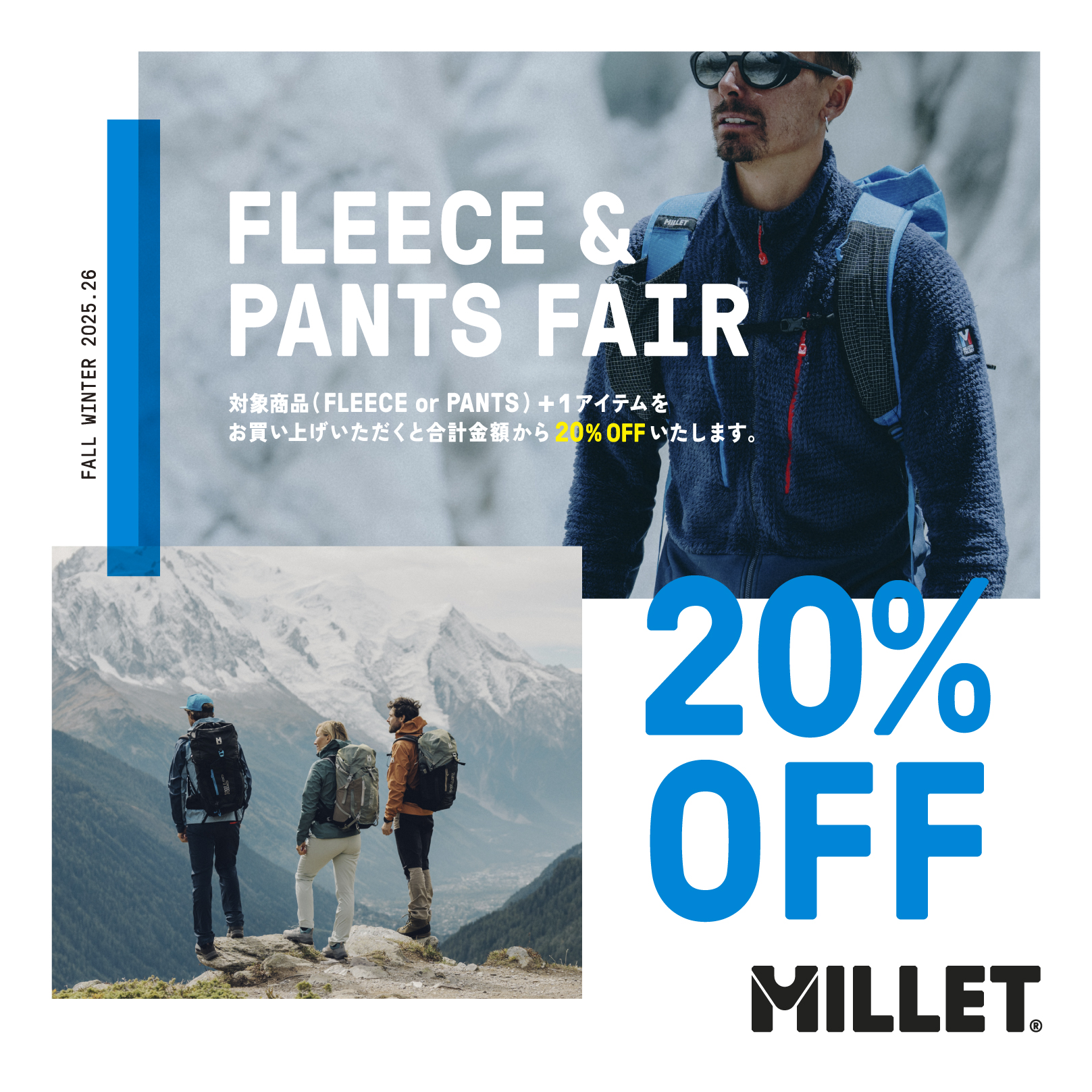 Millet Factory Store滋賀龍王目前正在舉辦 FLEECE & PANTS FAIR!