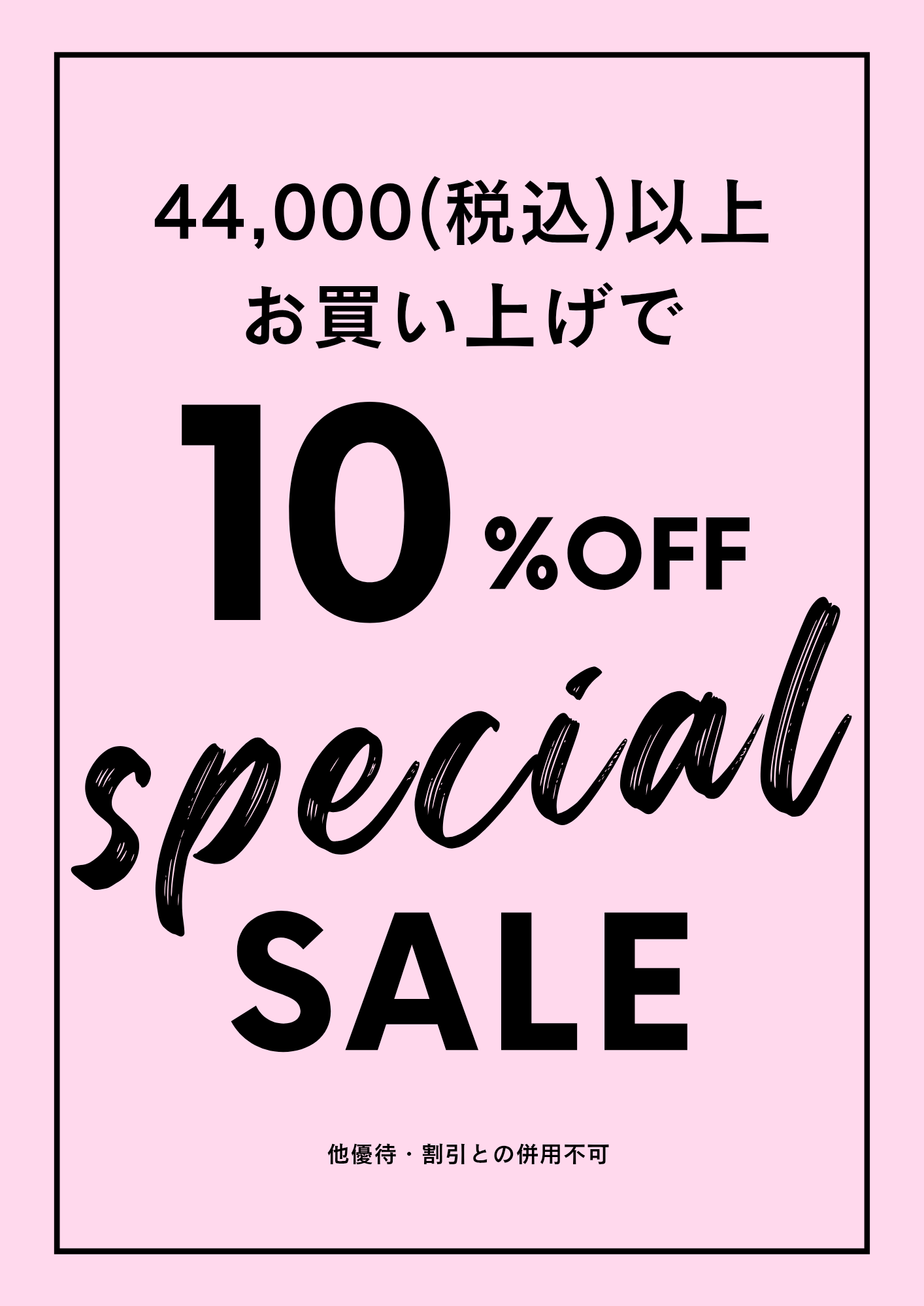 店内商品44,000円(税込)以上お買い上げで、レジにて10%OFF。