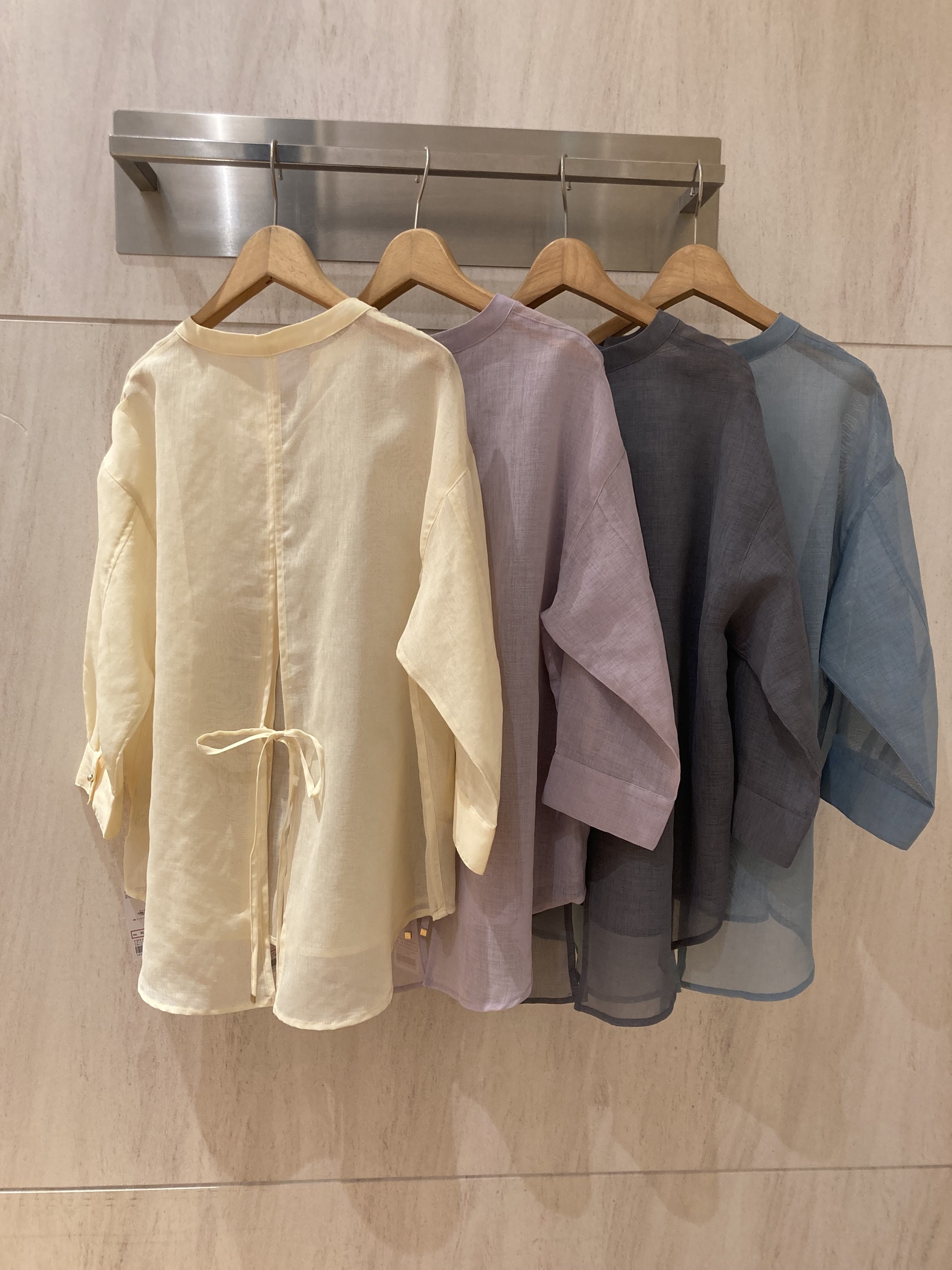 【產品名稱】輕薄亞麻質感露背緞帶襯衫