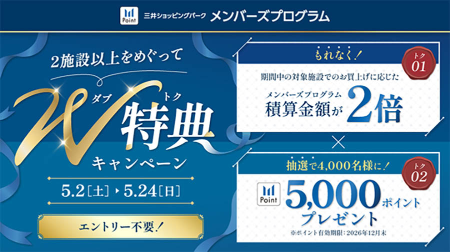 ※即使購買商品中包含享有優惠稅率(8%)的商品,也仍將依照標準稅率(10%)計算出的總金額進行積分。 *家庭卡也符合此活動資格。 ※使用具有信用功能的積分卡(包括透過應用程式支付的二維碼)進行信用卡支付以外的支付時,積分不會增加。 *部分商店、產品和服務不符合資格。 *內容可能會更改或取消,恕不另行通知。