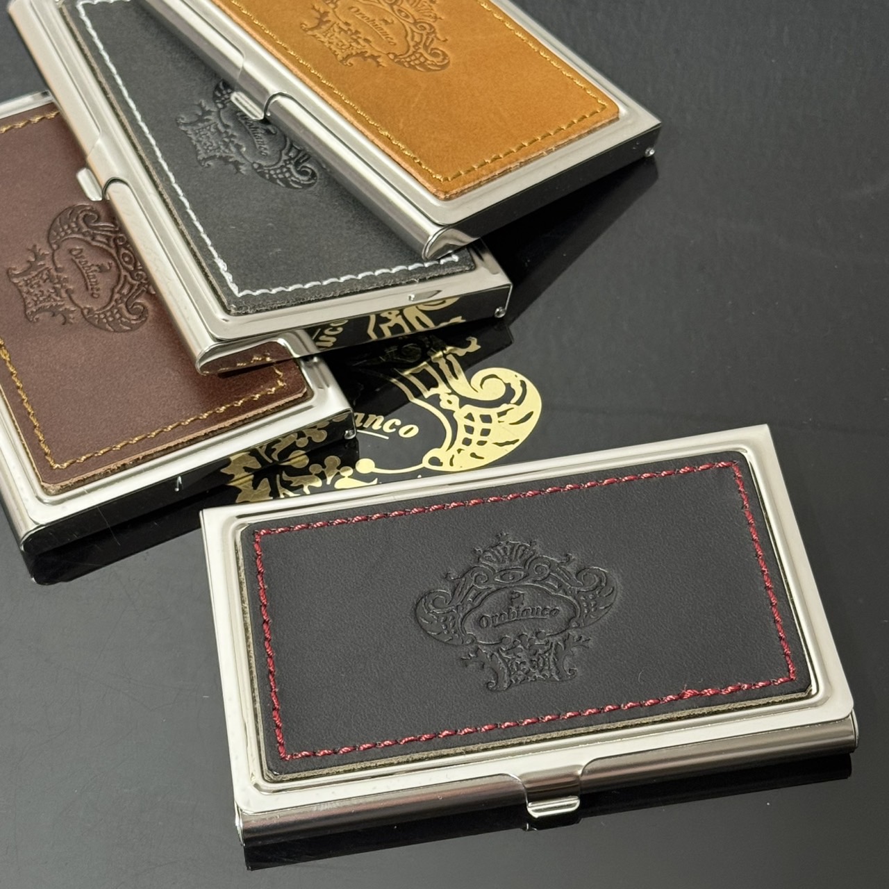 這款金屬卡套的設計與真皮的質感絕妙搭配。