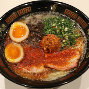 豚骨を力強く炊き出し、コク深いスープに自家製辛玉を合わせた旨辛豚骨ラーメン。