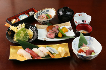 幹事様安心の銘々盛り!ほっこり自慢の和食と海鮮を使い、〆に自慢の握り寿司を揃えたコースプラン。