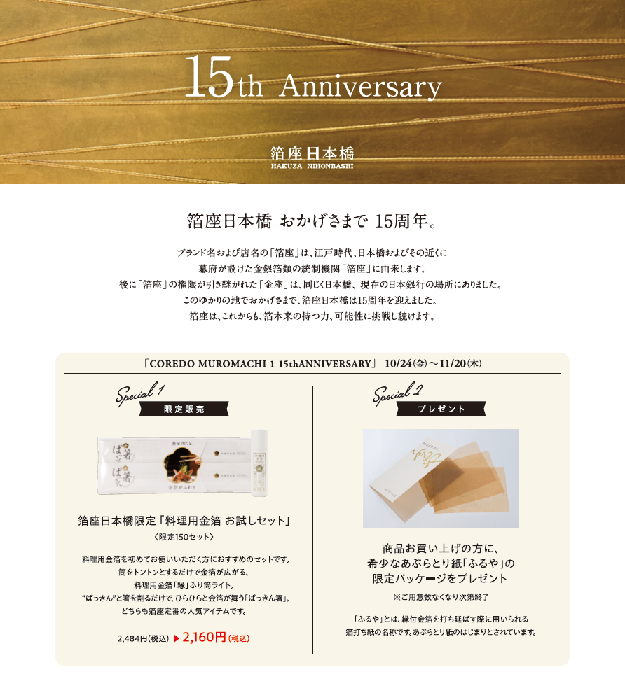 多虧了HAKUZA NIHONBASHI迎來了成立 15 週年。