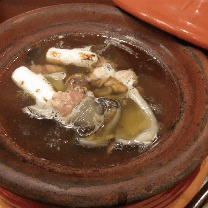 静岡県浜名湖産のすっぽんを炊いた、すっぽん鍋。京焼の土鍋でお一人様ずつご提供いたします。旨みが強く、深みのあるお出汁と、すっぽんの食感が味わえます。栄養豊富、生姜が効いた、体がポカポカになる一品です。