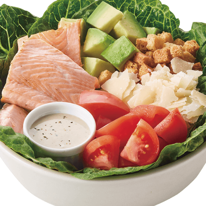 クリスプ王道のシーザーサラダが、サーモントッピングでパワーアップ!アボカドとサーモン、シーザードレッシングの組み合わせはまさに王道です!