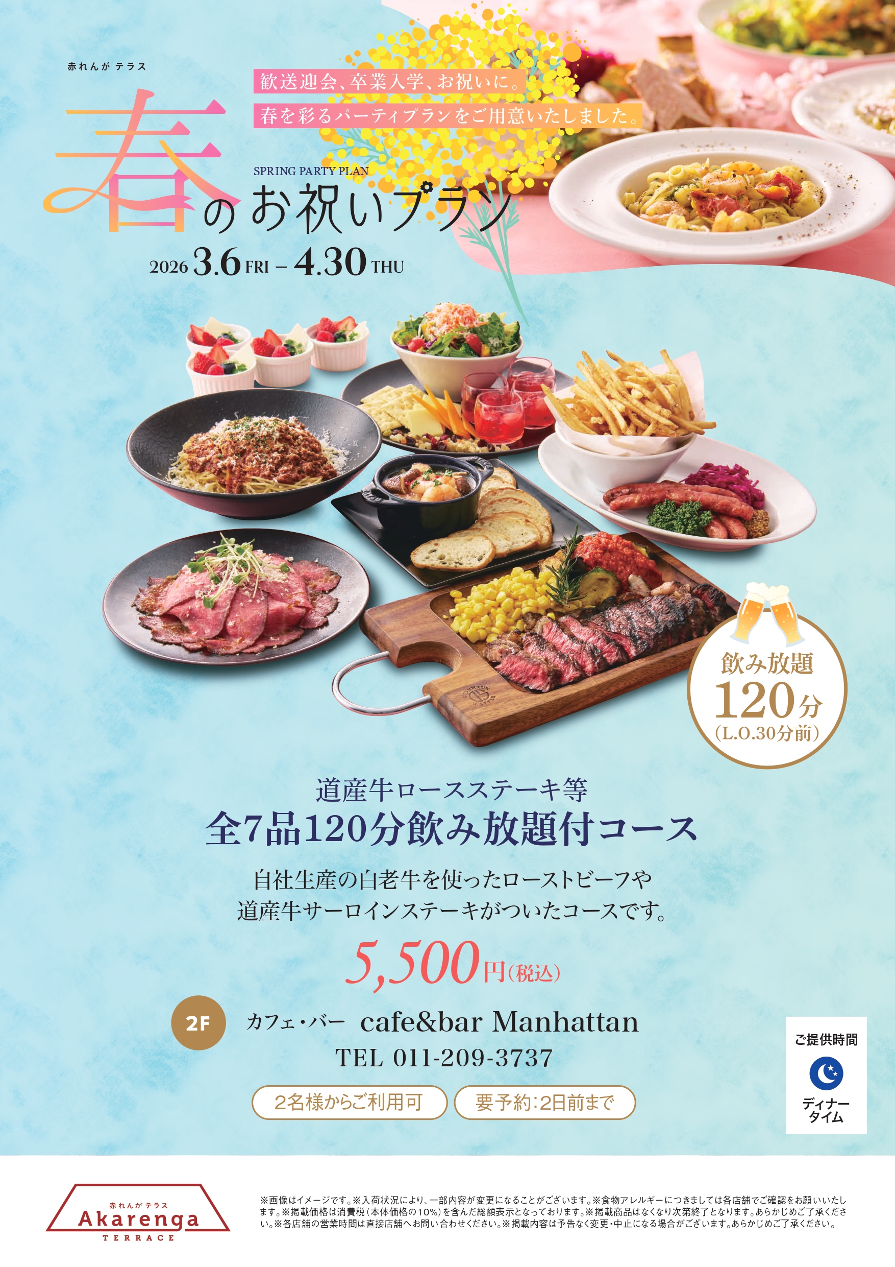 <ディナー>17:00~23:00(L.O.22:00)