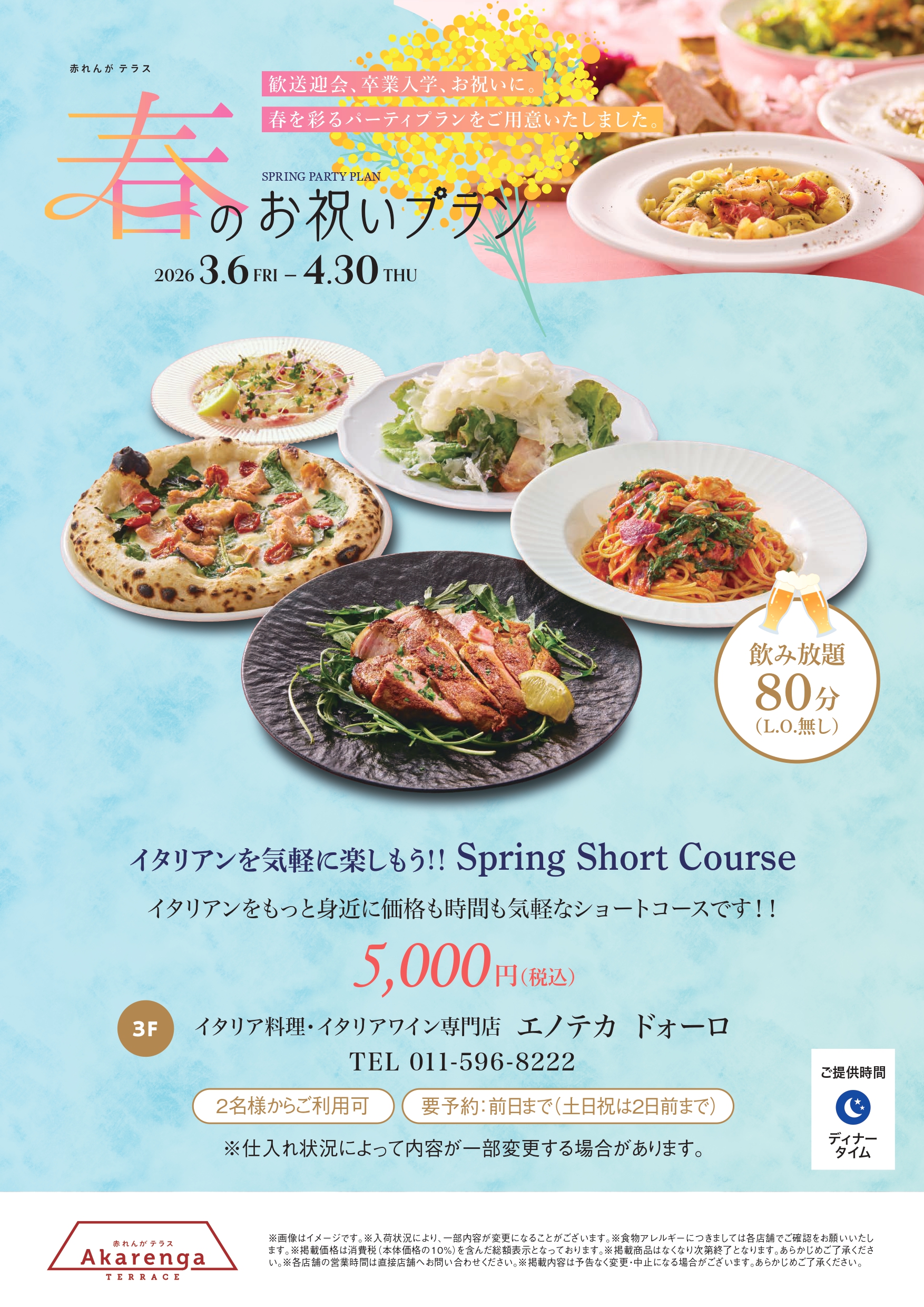 <ディナー>17:00~23:00(L.O.21:30)