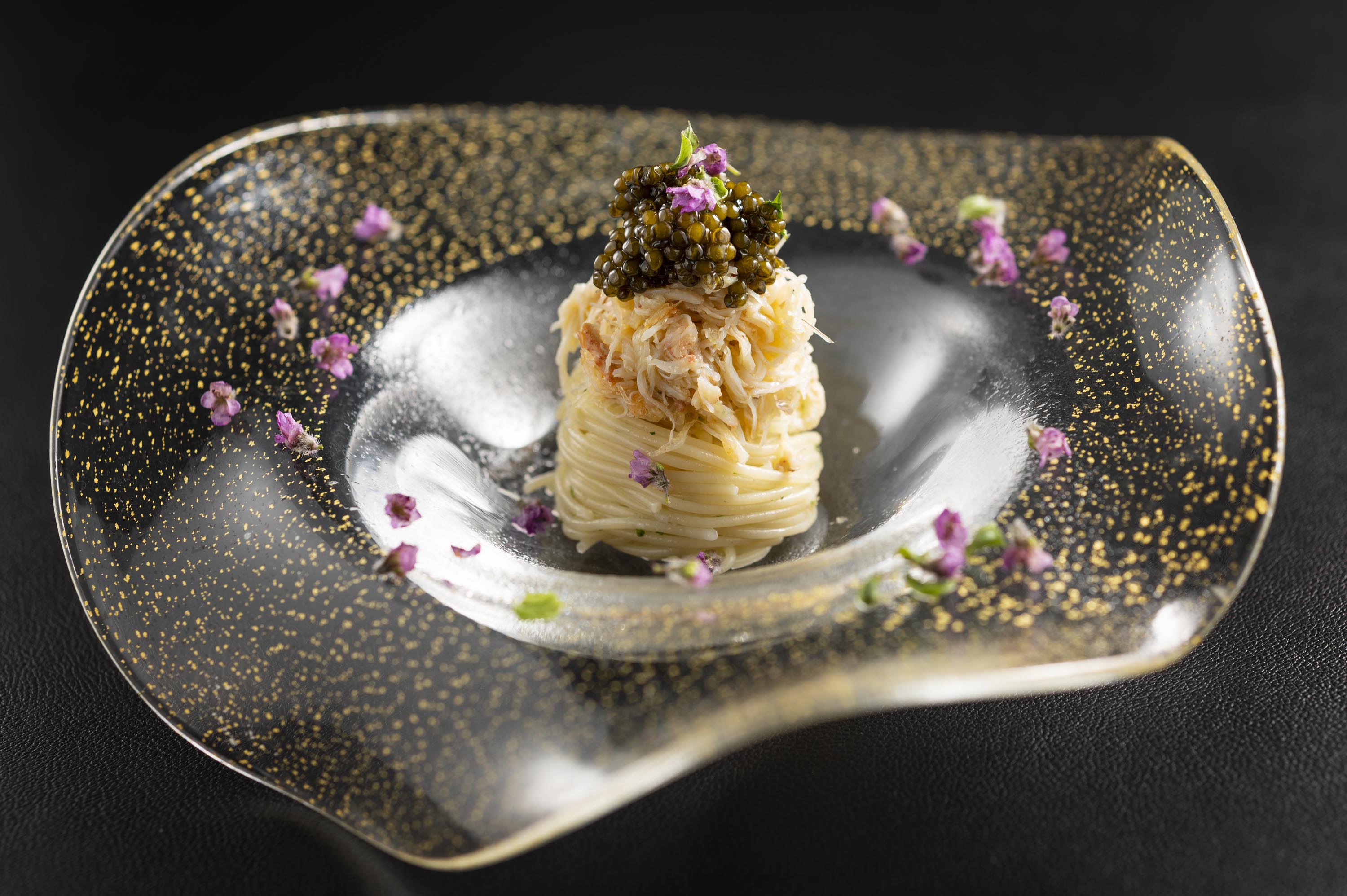 A mere three-minute walk from Ginza Station, Cucina Haruno is perfect for a tasteful, upscale outing. The restaurant’s young head chef masterfully uses seasonal ingredients to craft simple yet delectable handmade pasta dishes that showcase Italy’s diverse regions. For a special treat, try the caviar course — a house specialty — featuring a caviar capellini that absolutely steals the show with its generous heaping of caviar atop delicate, handmade pasta. The restaurant also offers a la carte dishes, allowing you to curate your own dining experience.