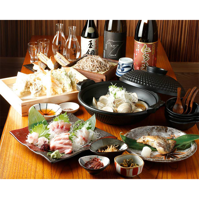 島根の食材を使用した郷土料理、日本酒に合うおつまみ、神話の國 出雲の特選手打ち「出雲そば」、奥出雲の名産「仁多米」を使用したお料理をを多数ご用意しております。
