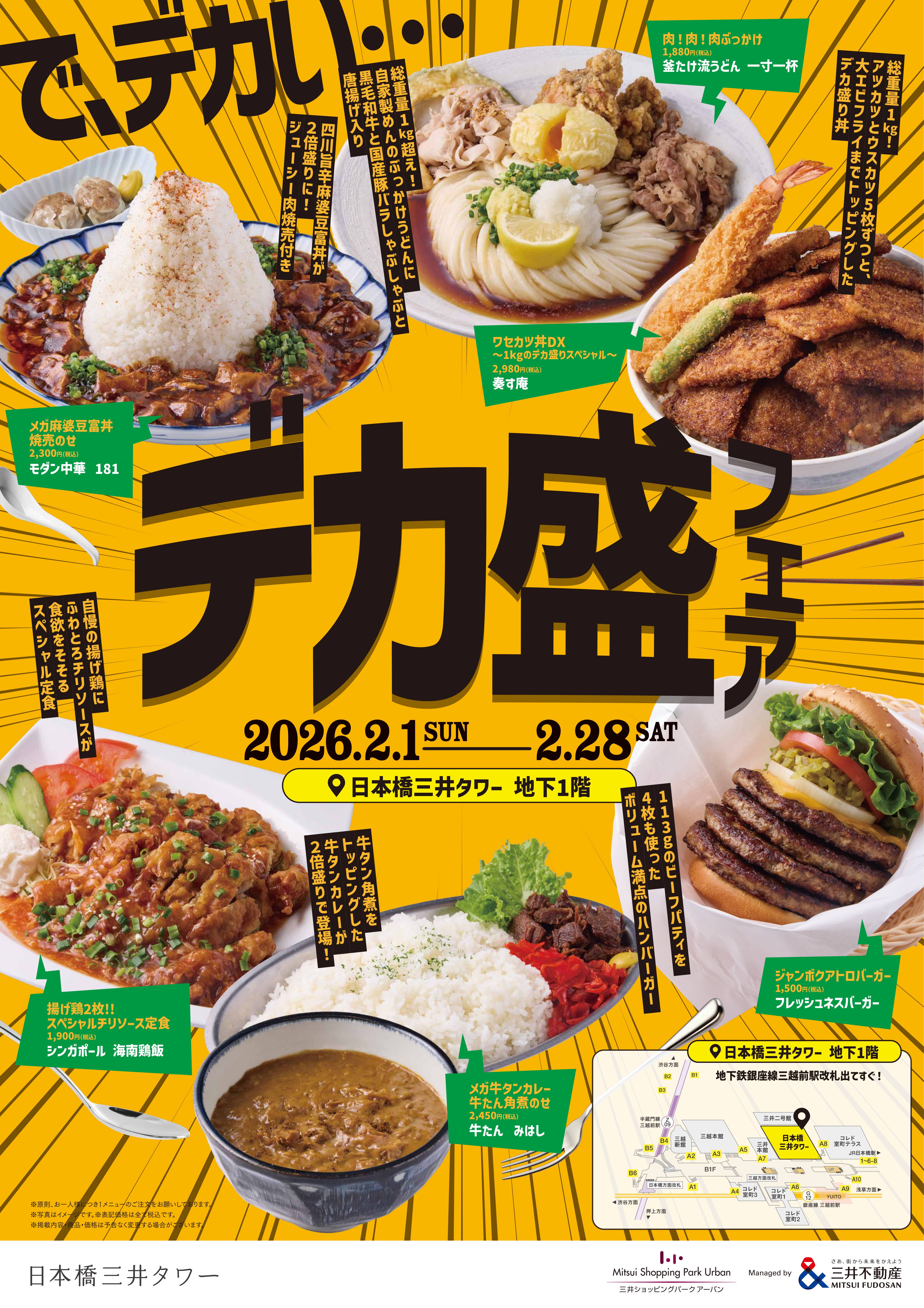 日本橋三井タワー地下1階飲食店舗にて「デカ盛りフェア」開催! 2/1~2/28