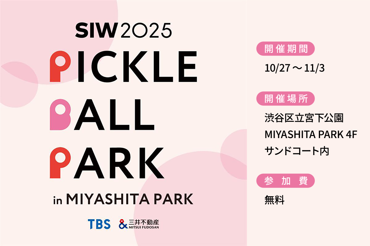 渋谷区のイベント「SOCIAL INNOVATION WEEK(SIW)」の期間中にTBSと三井不動産は、10月27日(月)~ 11月3日(月・祝)の1週間にわたり「Pickleball Park in MIYASHITA PARK」と題して、全世界で急成長中の誰でも楽しめる新興スポーツ「ピックルボール」を体験できるイベントをMIYASHITA PARKで初開催。