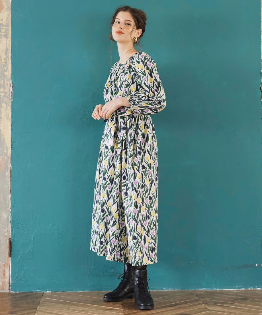 散歩中の道端に咲く素朴な花たちにフォーカスを当てて出来上がった柄です。