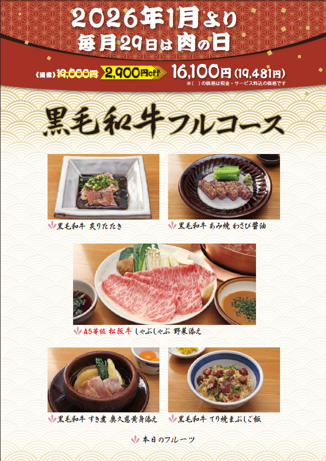 にて、2026年1月より毎月29日を『肉の日』といたしまして