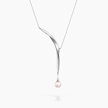 新素材“Tin Gold”ジュエリー しなやかな曲線と大粒のアコヤパール揺れるピアス「Ribbon Earring Line + Short Back Ribbon, Single」