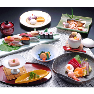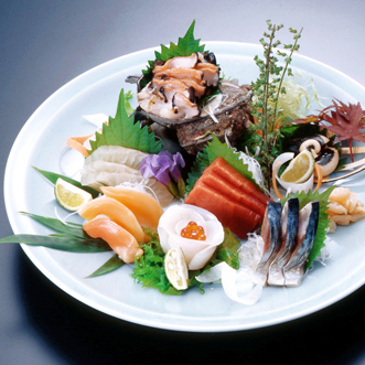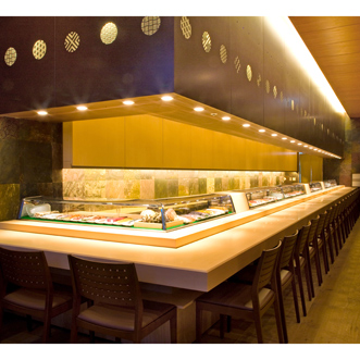 旬や産地にこだわって厳選された新鮮なネタが常時50種以上揃うのは、鮮魚問屋直営店ならでは。コース料理から一品料理まで豊富に揃えており、手間を惜しまない本物の味を提供。開放感のある高い天井に木・石・緑を基調とした上質な和の空間で、本格江戸前鮨の「活き」と「粋」を堪能できるお店です。