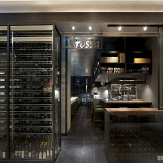 オーストラリアワインを専門に扱う「渋谷アロッサ」の2号店。ニュージーランドワインを150種以上常備し、ワインとの相性を考えたニュージーランド産のビーフやラム肉を中心とした料理とともに楽しめます。入口のワインセラーは見上げるほどの高さ。天井が高く開放感があって居心地のよい空間です。